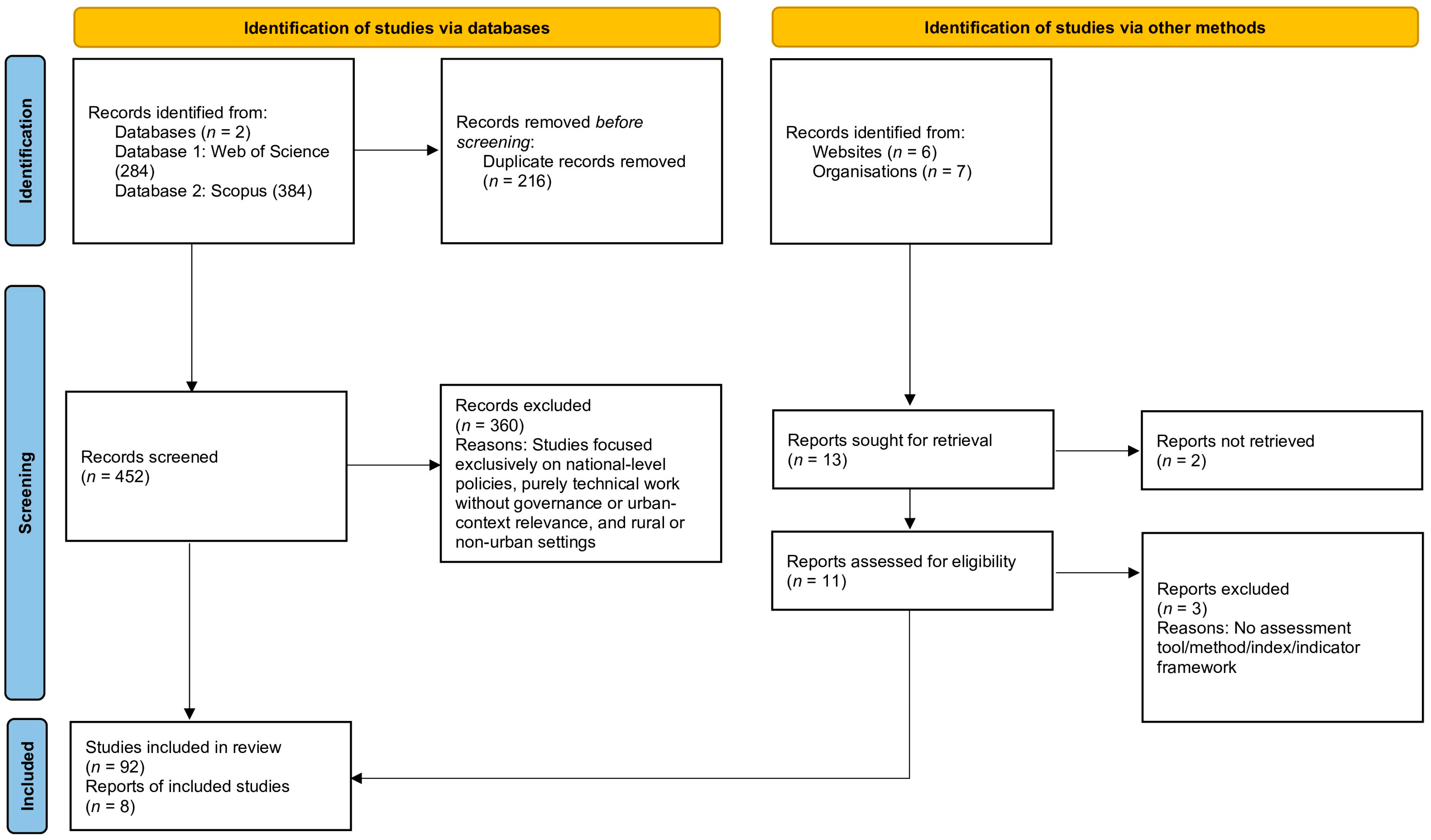 | Databases | Scopus, Web of Science | Broad, high-quality coverage of interdisciplinary peer-reviewed literature. |