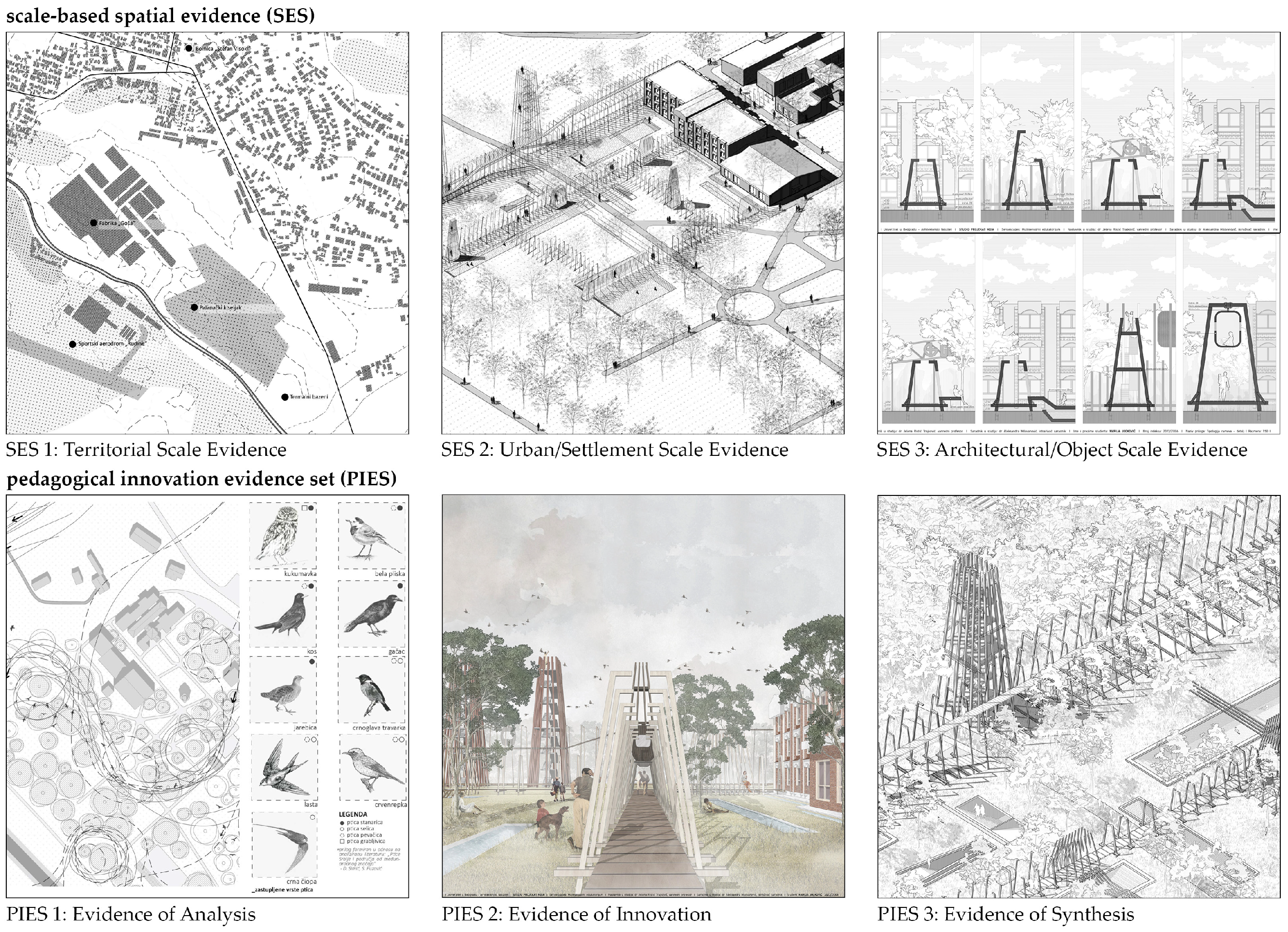 | Track 1— Pedagogical Innovation | SPATTERN Compendium of Spascapes [56] | Pedagogical Parameters (PP) | Pedagogical differentiation/innovation benchmark (studio profiles and methods) |