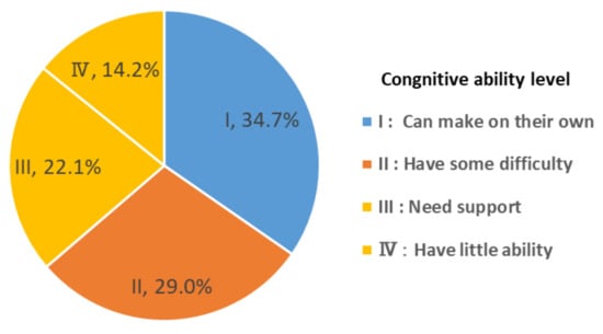 Figure 1 shows the classification results of cognitive ability level in daily life (2018). Approximately 36.3% of residents were classified as cognitive ability level III or higher.