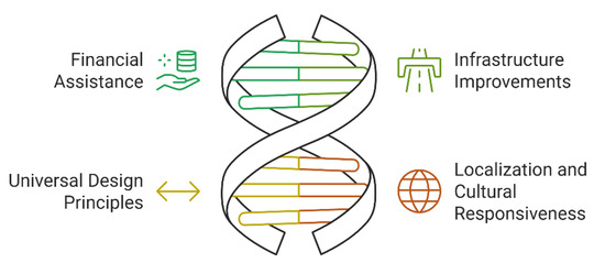 - Inclusive Accessibility: universal design principles adapt to sensory and motor impairments, while cultural and linguistic responsiveness broadens usability across diverse populations [12,13,14,25].
