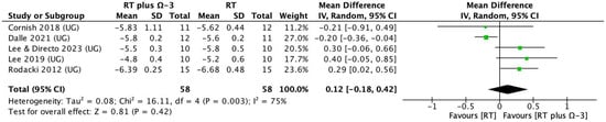 | Physical function (UG) | 5 | 116 | MD. Random. | 0.12 (−0.18, 0.42) | 0.42 | 75% |