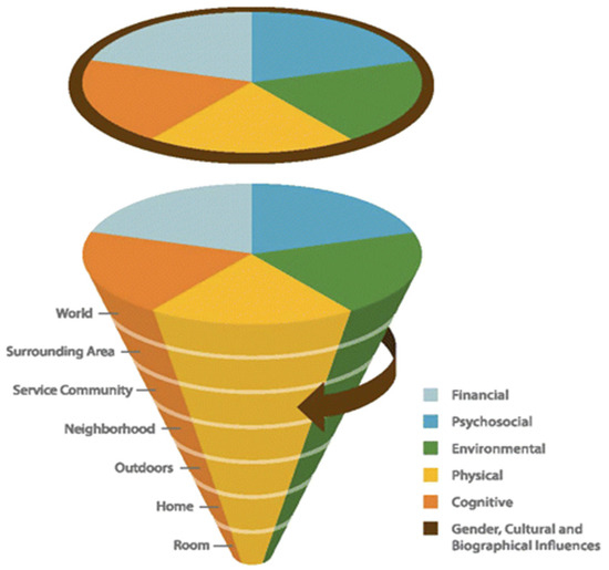- Lawton, M.P.; Nahemow, L. Ecology and the aging process. In The Psychology of Adult Development and Aging; Eisdorfer, C., Lawton, M.P., Eds.; American Psychological Association: Washington, DC, USA, 1973; pp. 619–674. [Google Scholar] [CrossRef]