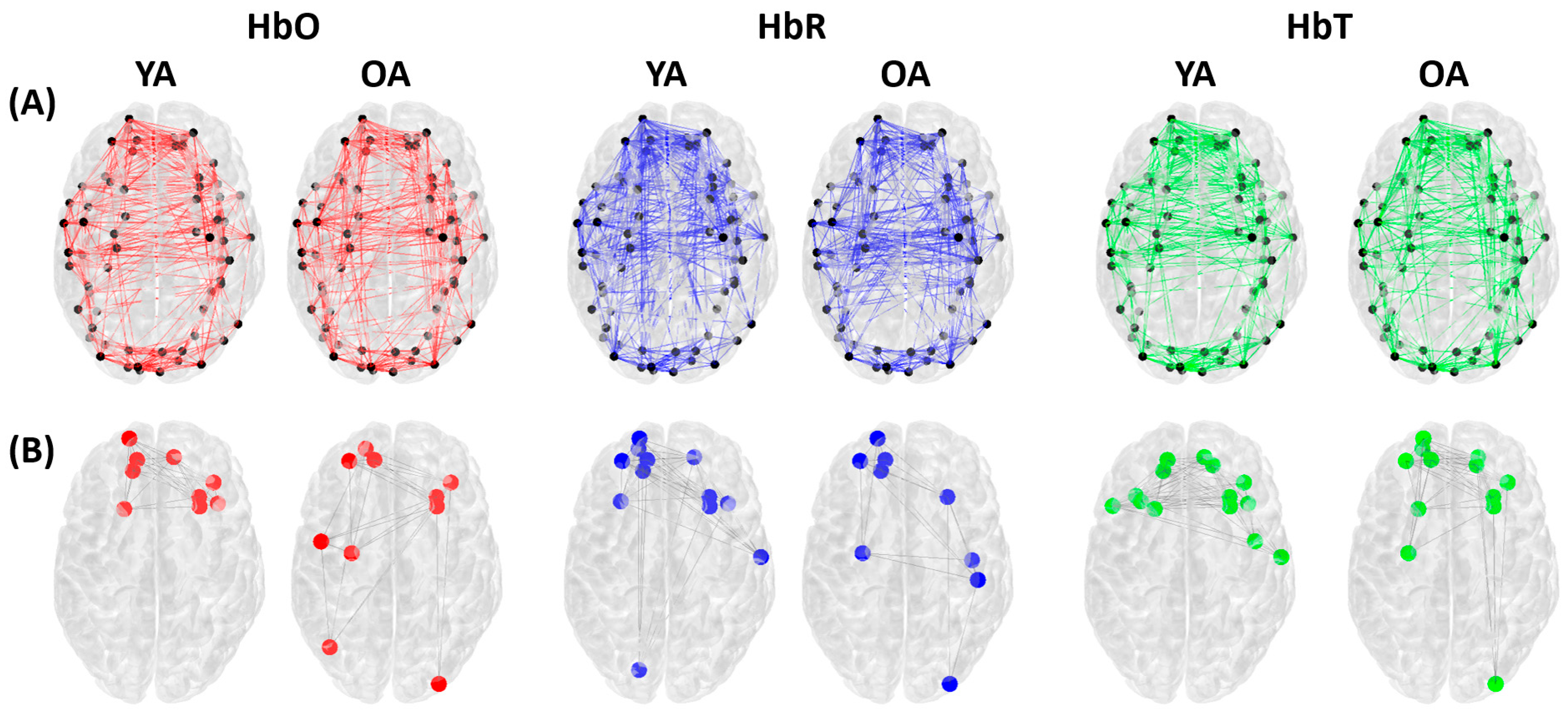 - Li, L.; Babawale, O.; Yennu, A.; Trowbridge, C.; Hulla, R.; Gatchel, R.J.; Liu, H. Whole-cortical graphical networks at wakeful rest in young and older adults revealed by functional near-infrared spectroscopy. Neurophotonics 2018, 5, 035004. [Google Scholar] [CrossRef] [PubMed]