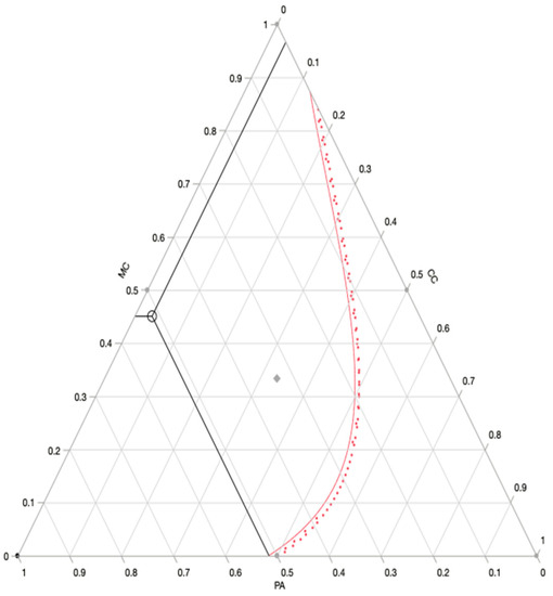 Distribution of experimental points for the augmented simplex-centroid design. MC: Myrtus Communis; CC: Carum carvi; PA: Pimpinella anisum.