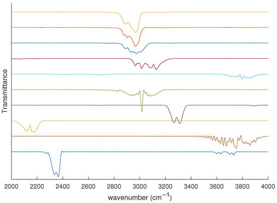Moreover, in Figure 7, regardless of the overestimation of some peaks, all the peaks between 3600 and 4000 that are due to the overlapped spectra of CO and HS were resolved, even though not all of them appeared in the low-resolution measured spectrum. This comes as no surprise as the trained network relies on the global features of the spectra and was able to recognize the existence of both gases. This represents one example in which the influence of global features is desirable.