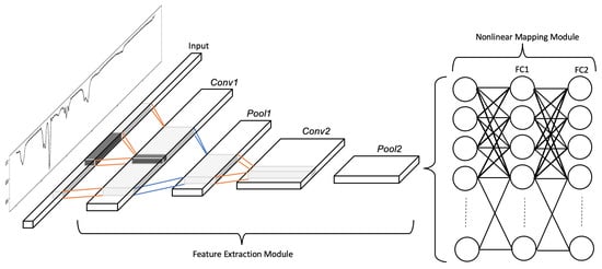 The proposed 1D CNN architecture with two convolutional and two fully-connected layers.