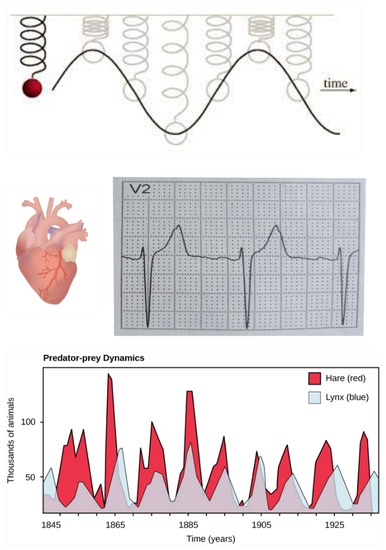 These same researchers also realized that non-linear phenomena (i.e., a flow non-linearly proportional to the force causing it) were more of a rule than an exception in natural systems and that this non-linearity enabled a whole new dynamic paradigm (or vitality) for these open systems. For example, sustained oscillations of relevant variables (e.g., a heart beat, or predator-prey population cycling, see Figure 2) which are fundamentally different than the oscillations of an imaginary friction-less (and therefore non-damped) harmonic oscillator because these oscillations are driven by the dissipation of energy, or entropy production (see discussion of “rotation around stationary states” in Prigogine [8] or Michaelian [15]).