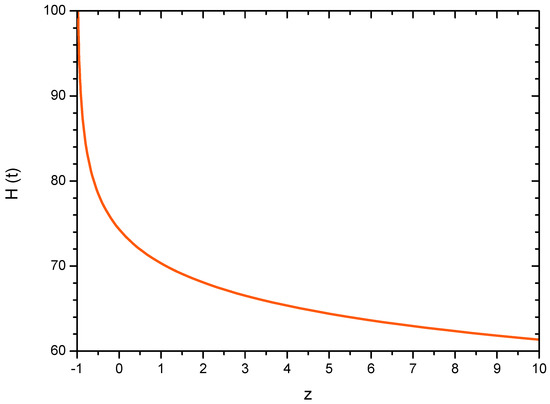 Hubble parameter as a function redshift. The Hubble parameter is in km s−1 Mpc−1 units.