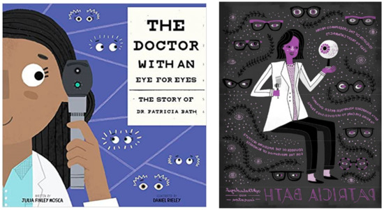 Thanks to the work carried out throughout her life, her effort and her dedication to Ophthalmology, Patricia Bath received honors from two of her universities. In 1998, Hunter College gave tribute her by placing her in their “Hall of Fame” and Howard University named her a “Howard University Pioneer in Academic Medicine” in 1993. An illustrated book about her life and work (Figure 7, left) was also published in 2017. Both the National Association of Science Teachers and the Chicago Public Library considered that book as one of the best books for children of the year. Specifically, that library named it “the best of the best selection [12]. Another book on her was titled “Women on Science”, by Rachel Ignotofsky (Figure 7, right).