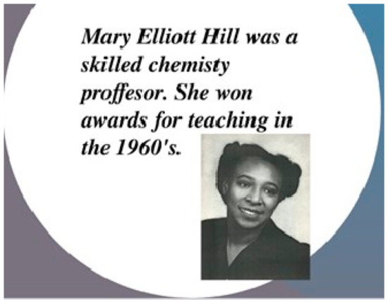 There is not much precise data in the literature about Mary Elliott Hill. In fact, although that information is not officially confirmed, it is thought that she is the first Black woman to earn a bachelor’s degree in Chemistry, [13]