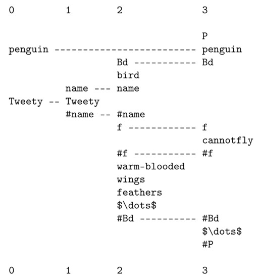 - Wolff, J.G. Information compression, multiple alignment, and the representation and processing of knowledge in the brain. Front. Psychol. 2016, 7, 1584. [Google Scholar] [CrossRef]