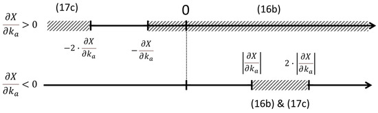The preceding discussion focused on increases of a given flow. What if the flow is to be decreased? Then, we have the specular image of what happens in the increased zone: the higher the value the better the path. This is easy to understand if one considers while dJ < 0. In this situation, the system still deals with the same amount of lost work but has a lower flow rate. Figure 3 summarizes these various situations depicted so far in reference to Equation (15). It is essential to note that for each parameter ka, the associated value is a single point in the plane. Alternatively, if turns out as a function of the parameter, then it might assume different values along the changes in ka. In the final section of the present manuscript, we develop a case study of this last type.