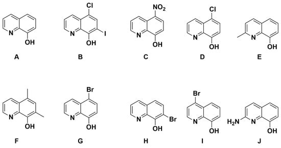 The 8HQ compounds examined in this study.