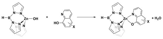 3.1. Structures of TpZn Bound to 8HQ Derivatives