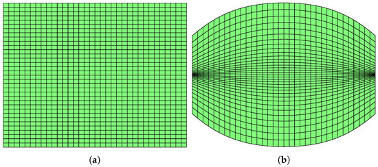 The same can be performed for y and z, i.e., for and , respectively. The set of non-linear differential equations obtained must be solved if the path of the field in the material is required. The solutions can then be substituted into the geodesic expression that minimises the path of the field as a function of the coordinates such as the x-direction, which is given by (144). The Christoffel symbols of the second kind are determined via (84). Figure 17 shows a combination of compression and expansion transformations yielding a ‘warped’ material medium that concentrates the field in a central region but eliminates it in the surrounding regions of the material using the following transformations: