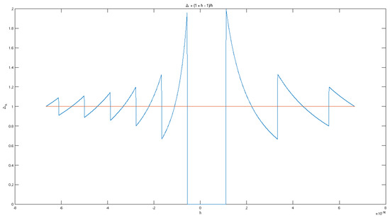 Consider the first difference for the simplest non-constant function at the point . We have . The graph of the computed function for is shown in Figure 3 in blue. The graph of the exact function is the horizontal red line.