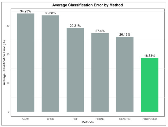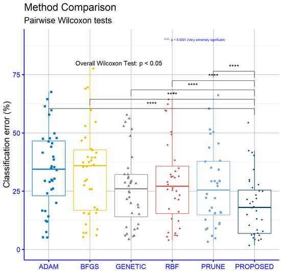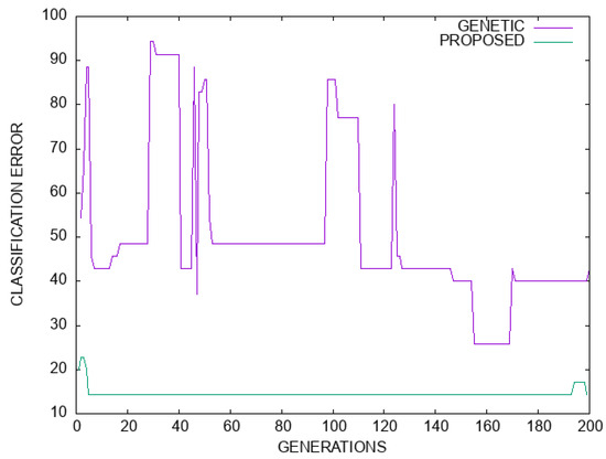 However, although the above techniques are extremely effective in reducing the training error of artificial neural networks, they often cause the problem of overfitting, where the artificial neural network exhibits poor results when applied to data that were not present during its training. A series of methods have been proposed in the recent literature to tackle the overfitting problem, such as the weight sharing method [24], pruning techniques [25], the incorporation of early stopping [26], weight decaying [27], the Dropout method [28], positive correlation methods [29], etc. In addition, many researchers have proposed a series of works on the construction of the architecture of artificial neural networks. Among these methods, one can find the incorporation of genetic algorithms [30,31], the application of the PSO method [32], the application of reinforcement learning [33], etc. Moreover, Islam et al. suggested a novel adaptive merging and growing technique for the optimal design of neural network architectures [34]. Recently, a technique was presented that utilizes Grammatical Evolution [35] for the efficient construction of the architecture of an artificial neural network, as well as calculation of the optimal values of the parameters [36]. Liu et al. proposed a method to identify the number of processing nodes in neural networks, to avoid the overfitting problem [37]. In addition, Piotrowski et al. published a comparison of methods to avoid the overfitting problem, designed for the case of runoff modeling [38]. A systematic overview of the overfitting problem and possible solutions can be found in the recent work of Ying [39].