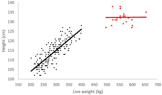 - Gibson, M.; Rogers, C.; Hickson, R.; Dittmer, K.; Back, P. Live weight and bone growth from birth to 15 months of age in pure-bred and cross-bred Jersey and Friesian heifers. N. Z. J. Anim. Sci. Prod. 2021, 81, 45–50. [Google Scholar]