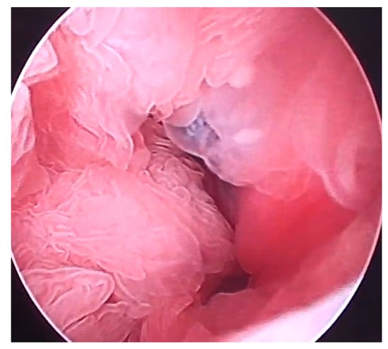 Hysteroscopic appearance of the uterus. Corrugation is evident in the whole area of the endometrial walls.