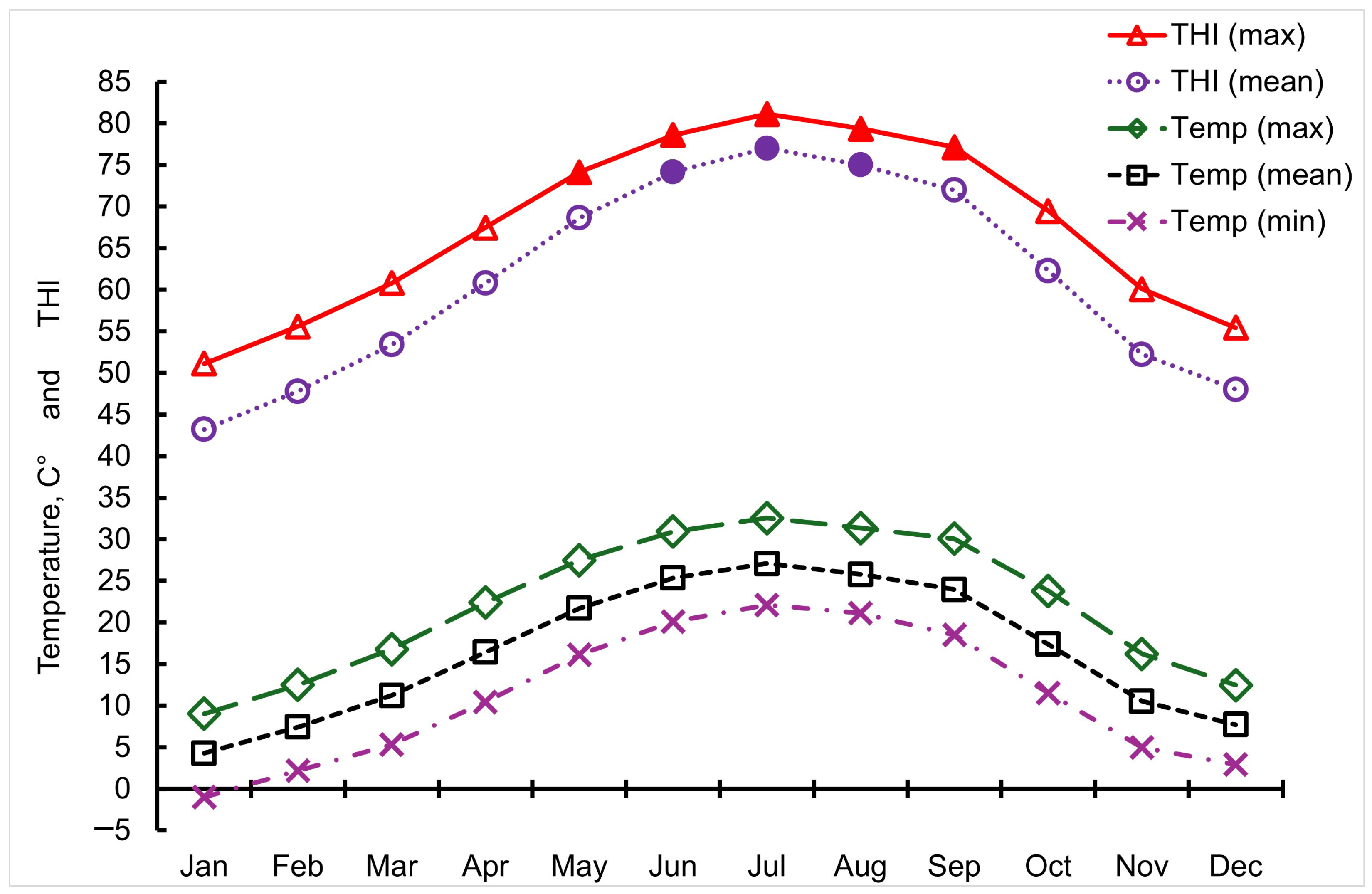 - Vincent, C.K. Effects of season and high environmental temperature on fertility in cattle: A review. J. Am. Vet. Med. Assoc. 1972, 161, 1333–1338. [Google Scholar] [CrossRef]