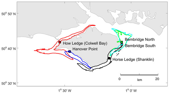 With other species of low or limited mobility, the spatial strategy in England to maintain connectivity of P. pavonica is for populations to be included within protected areas of minimum patch size diameter 0.5 km and which are not more than 40–80 km distant from other protected populations [34,43]. Currently, all of the Padina enclaves on the Isle of Wight fall within this distance range and are within two European (Natura 2000) Special Areas of Conservation (SAC) and designated or proposed Marine Conservation Zones (MCZs). However, it is of interest to establish evidence for potential connectivity both within and between the potentially vulnerable and fragmented populations remaining within this tidally dynamic and complex coastline. For species at the periphery of their geographic range, bio-physical models may be more helpful than genetic studies as populations may not be as reproductively active as those from the range centre [44,45,46], and therefore reproductive connectivity through genetic analyses of adults may not yield information on pathways of dispersal.