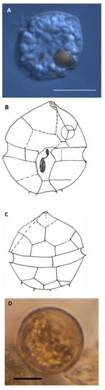 - Moestrup, Ø.; Calado, A.J. Süßwasserflora von Mitteleuropa, Bd. 6—Freshwater Flora of Central Europe, Vol. 6: Dinophyceae; Springer: Berlin/Heidelberg, Germany, 2018. [Google Scholar] [CrossRef]