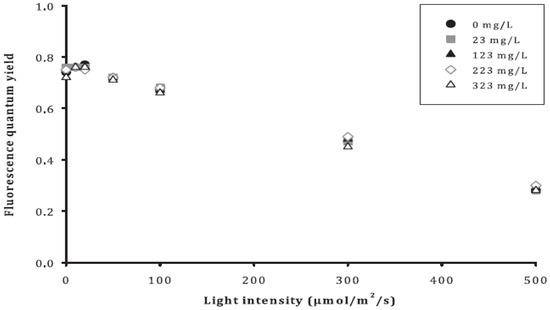 - Flameling, I.A.; Kromkamp, J. Light dependence of quantum yields for PSII charge separation and oxygen evolution in eucaryotic algae. Limnol. Oceanogr. 1998, 43, 284–297. [Google Scholar] [CrossRef]
