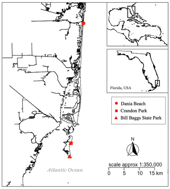 - Fiorentino, F.A.; Olascoaga, M.J.; Reiners, A. Analysis of Water Quality and Circulation of Four Recreational Miami Beaches through the Use of Lagrangian Coherent Structures. Mar. Pollut. Bull. 2014, 83, 181–189. [Google Scholar] [CrossRef] [PubMed]