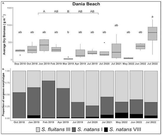 - Torres-Conde, E.G.; van Tussenbroek, B.I.; Rodríguez-Martínez, R.E.; Martínez-Daranas, B. Temporal Changes in the Composition of Beached Holopelagic Sargassum spp. along the Northwestern Coast of Cuba. Phycology 2023, 3, 405–412. [Google Scholar] [CrossRef]