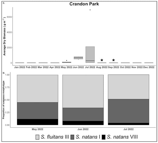 - Alleyne, K.S.T.; Johnson, D.; Neat, F.; Oxenford, H.A.; Vallѐs, H. Seasonal Variation in Morphotype Composition of Pelagic Sargassum Influx Events Is Linked to Oceanic Origin. Sci. Rep. 2023, 13, 3753. [Google Scholar] [CrossRef]