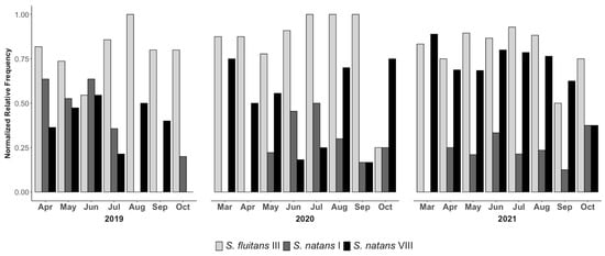 - Dibner, S.; Martin, L.; Thibaut, T.; Aurelle, D.; Blanfuné, A.; Whittaker, K.; Cooney, L.; Schell, J.M.; Goodwin, D.S.; Siuda, A.N.S. Consistent Genetic Divergence Observed among Pelagic Sargassum Morphotypes in the Western North Atlantic. Mar. Ecol. 2022, 43, e12691. [Google Scholar] [CrossRef]