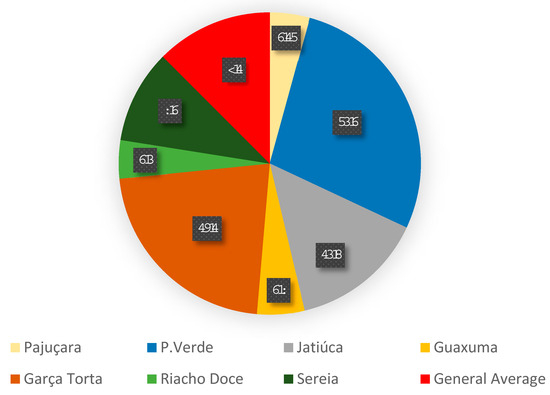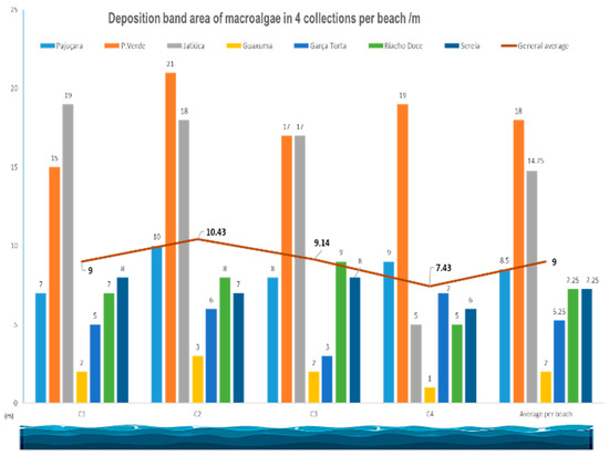 In Table 2, it can be seen that there was no biomass deposition at some collection points in September and October. This result confirms that in the rainy season, beaches without a geological fringe coral reefs presented less biomass deposition than beaches with great coral formation near the coast. These are characteristics of benthic macroalgae that reproduce more intensively through improved photosynthesis in summer while located on coral fringe rock barrier substrates, which then may become dislodged through the force of the tides [30,31,32].