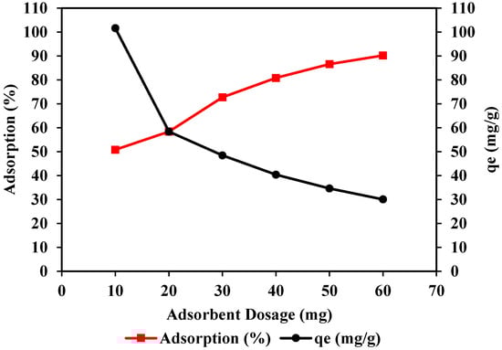 This observed trend supports the principle that high concentrations of adsorbate tend to enhance the capacity of the adsorbent. This phenomenon occurs because a greater concentration of adsorbate molecules results in more frequent interactions between the adsorbate and the functional groups on the adsorbent, thereby enhancing the overall adsorption process [27].
