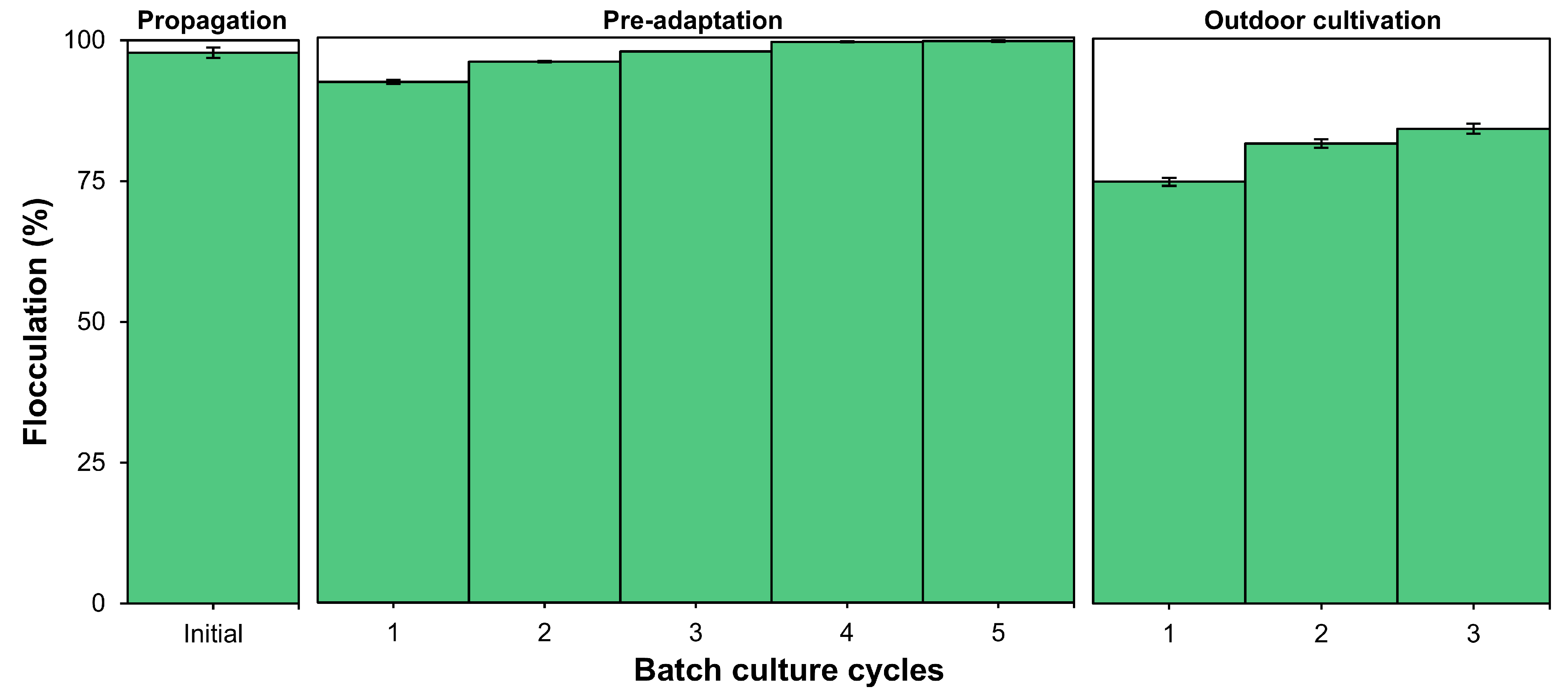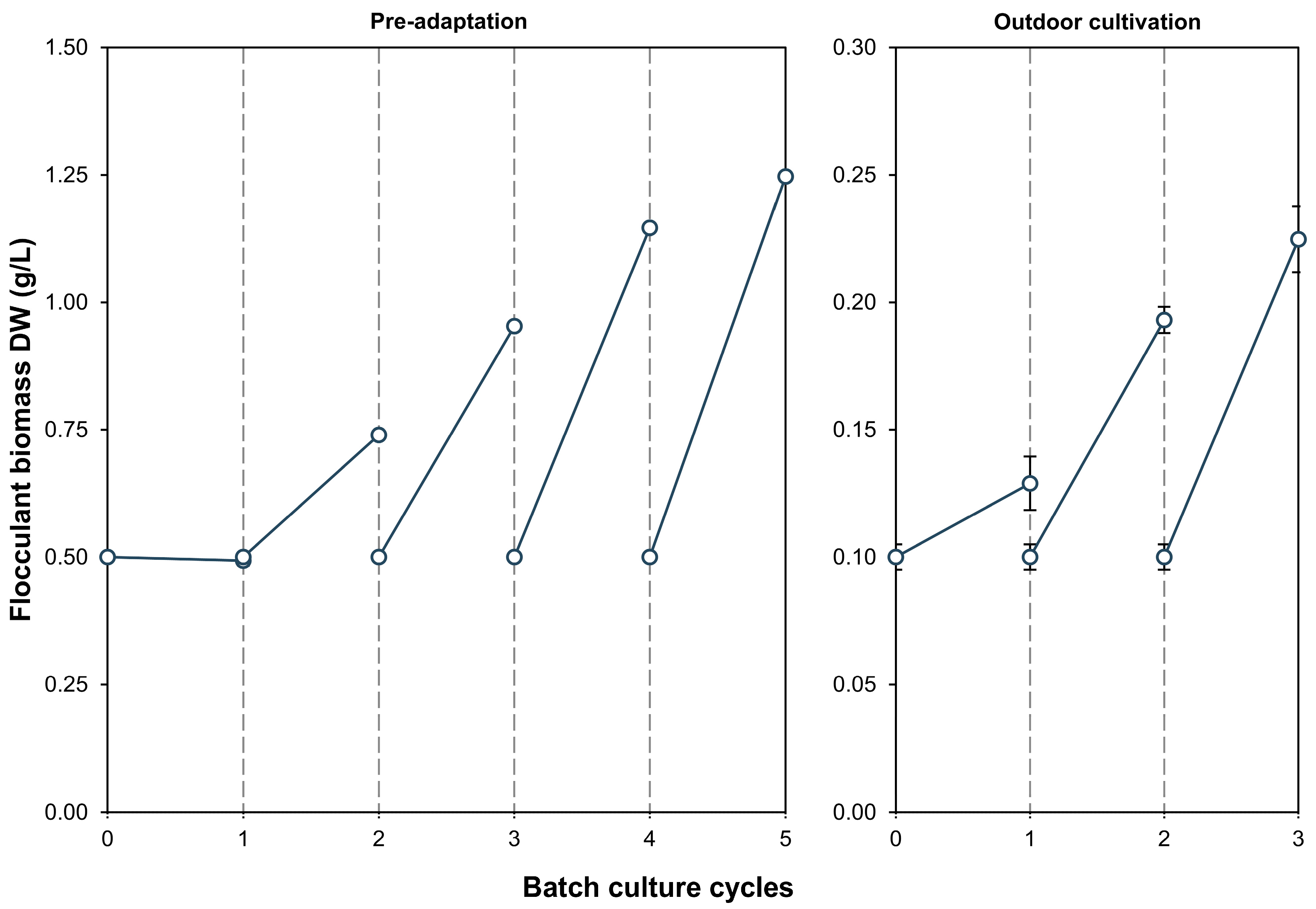 2.5. Flocculent Microalgal Biomass Production Using Secondary Effluents Under Outdoor Conditions