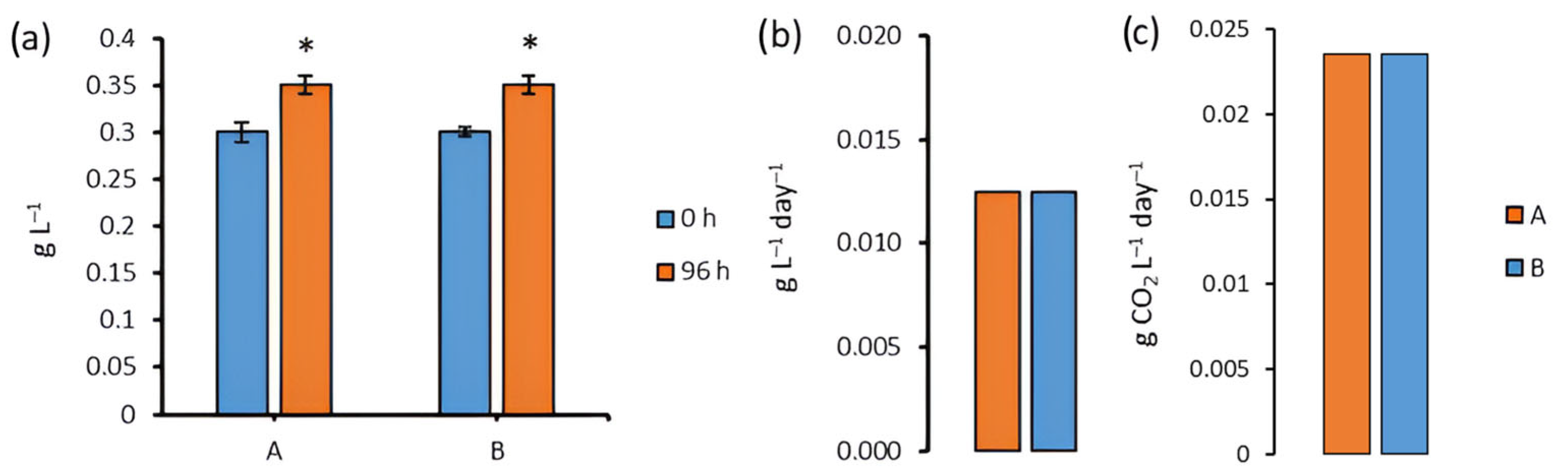 2.3. Growth Assessment and Rate of CO2 Biofixation