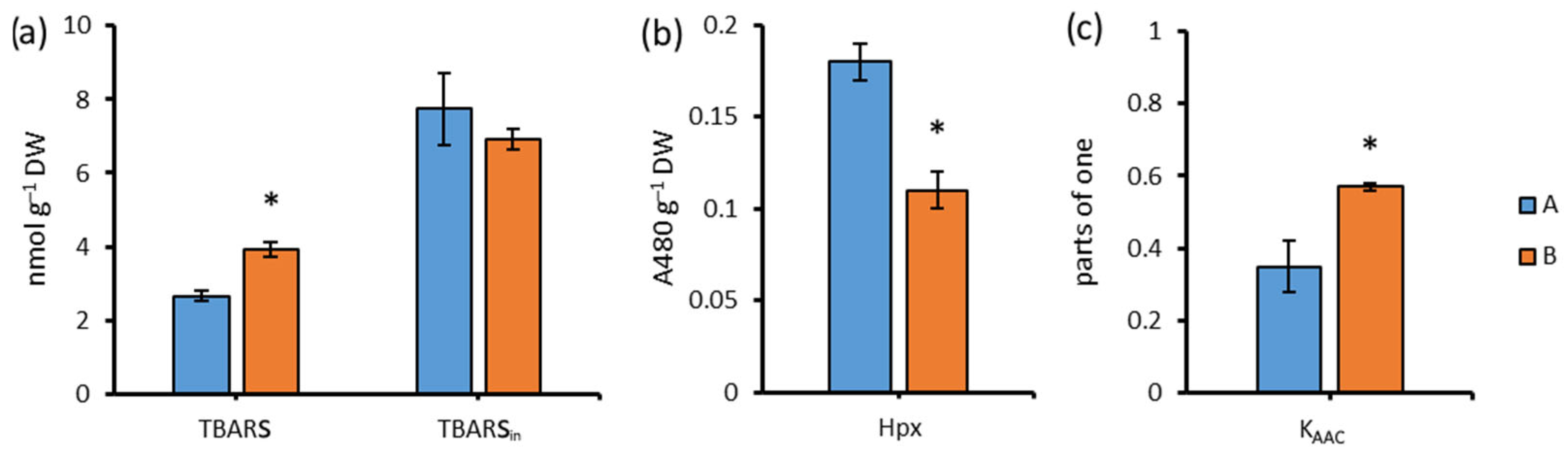 - Yakoviichuk, A.V.; Kochubey, A.V.; Maltseva, I.; Matsyura, A.; Cherkashina, S.V.; Lysova, E.A. Biochemical and antioxidant characteristics of the soil strain Chlorococcum oleofaciens (Chlorophyceae, Chlorophyta) grown in light, dark and bicarbonate conditions. Acta Biol. Sib. 2025, 11, 411–447. [Google Scholar] [CrossRef]