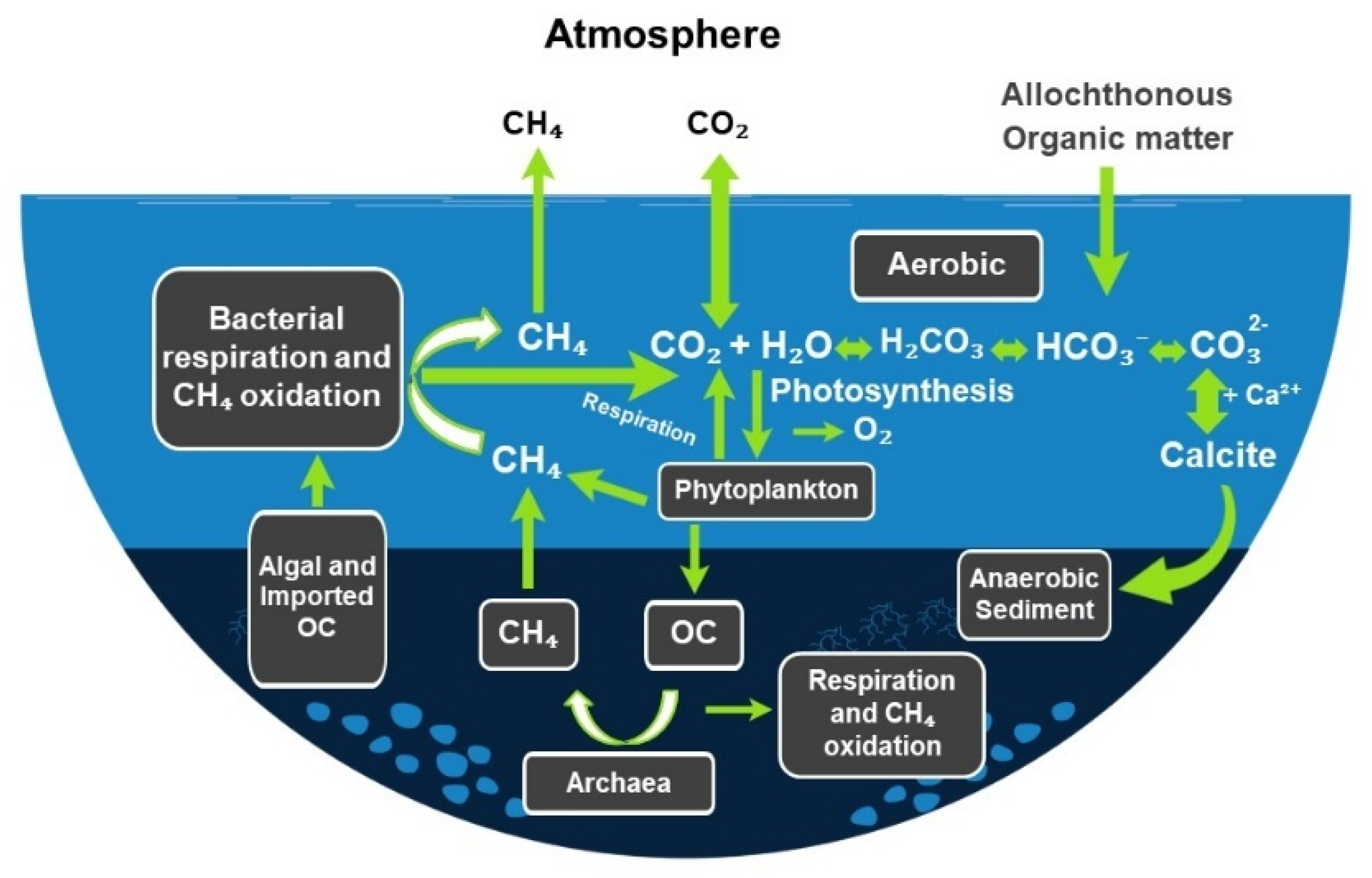 2.3. Distinguishing Factors in Carbon BE: Lakes vs. Oceans