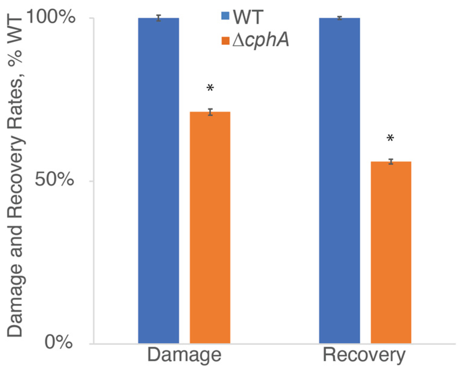 cphA, the PSII repair rate (recovery) was significantly higher for WT (