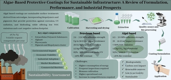 | Parameter | Algae-Based Coatings | Traditional Coatings (Epoxy, Polyurethane) |