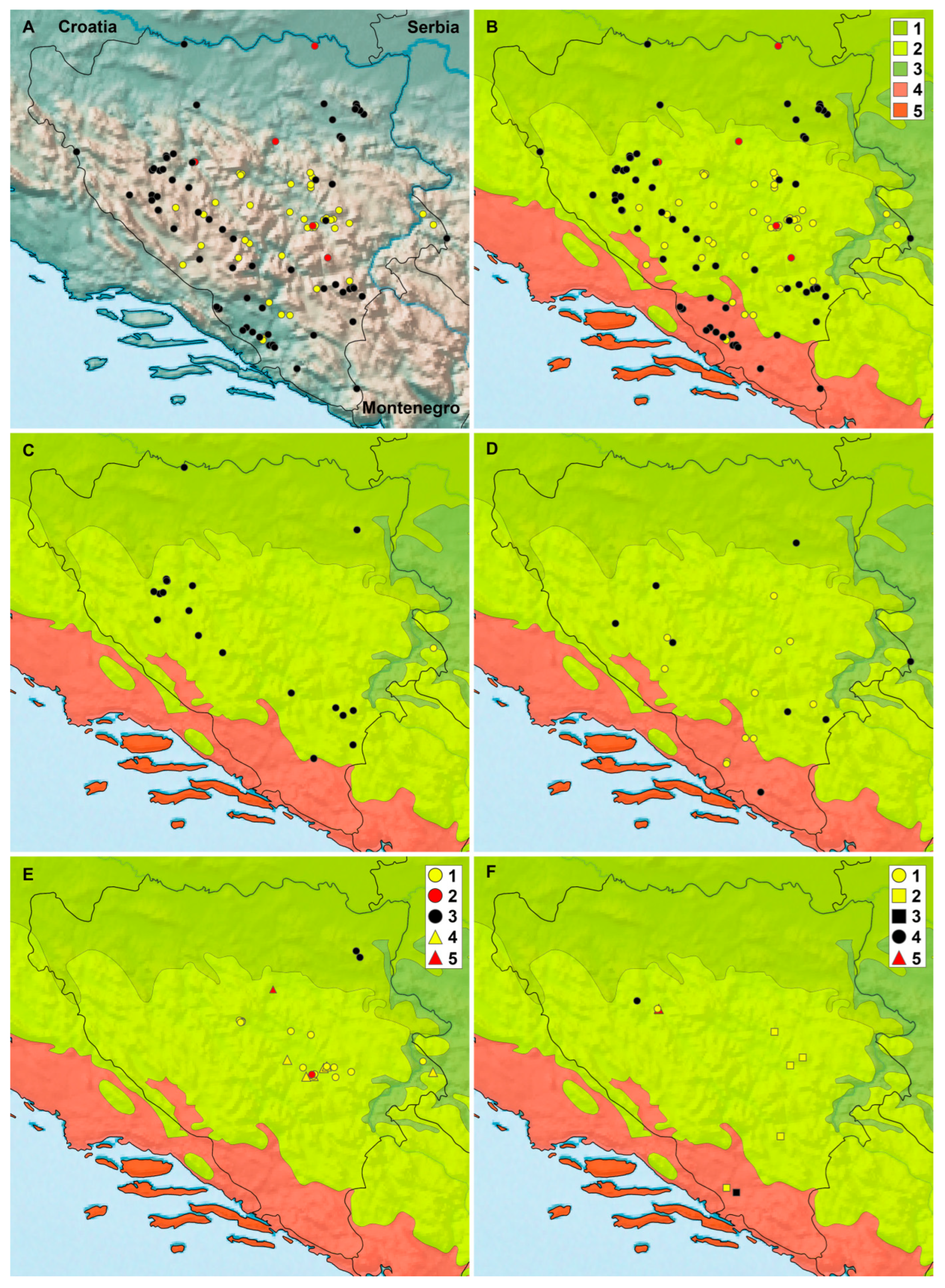 | Species | B&H | Croatia | Serbia | Montenegro |