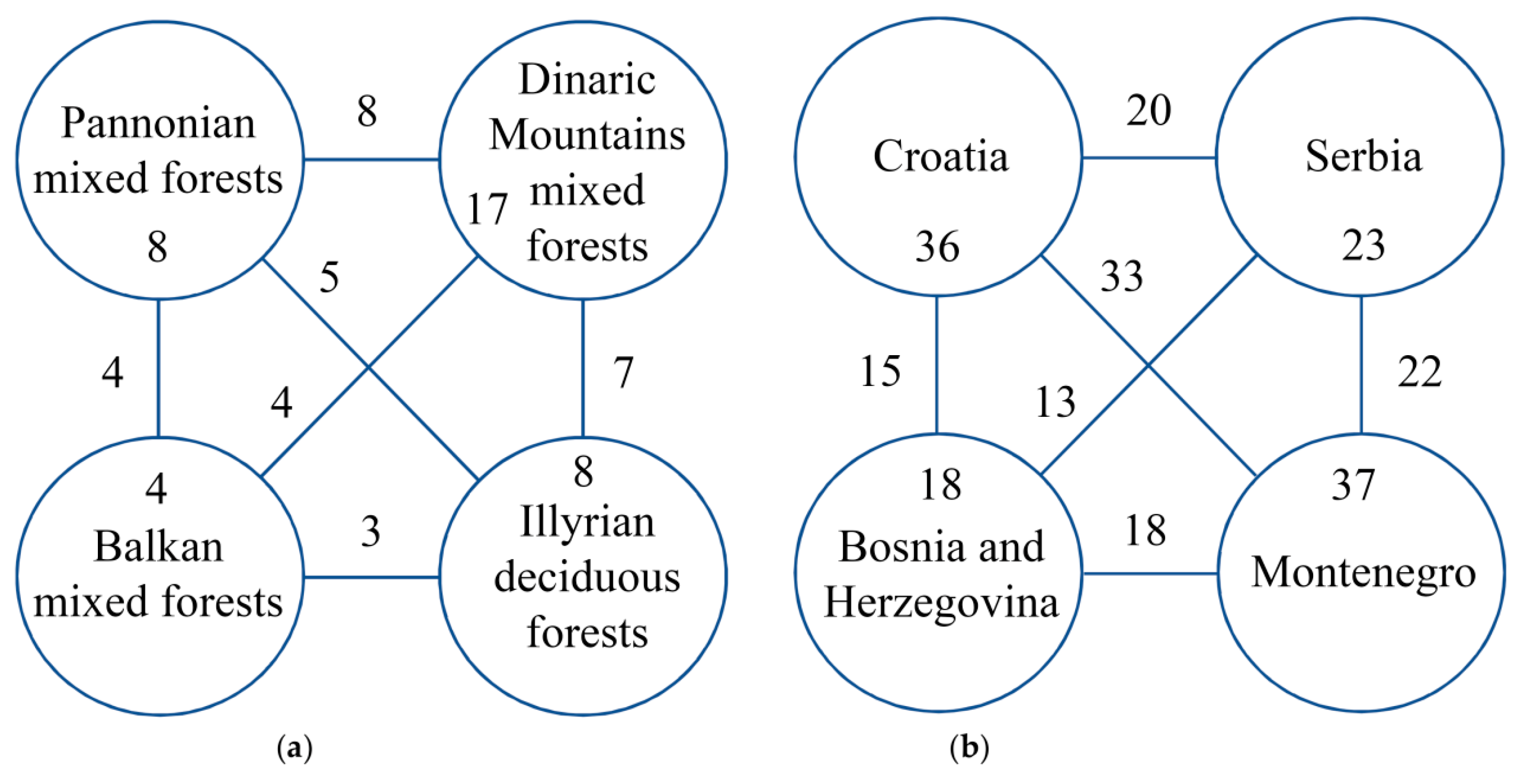 | Species and Genus Records | Pannonian Mixed Forests | Dinaric Mountains Mixed Forests | Balkan Mixed Forests | Illyrian Deciduous Forests | Total Number of Sites |