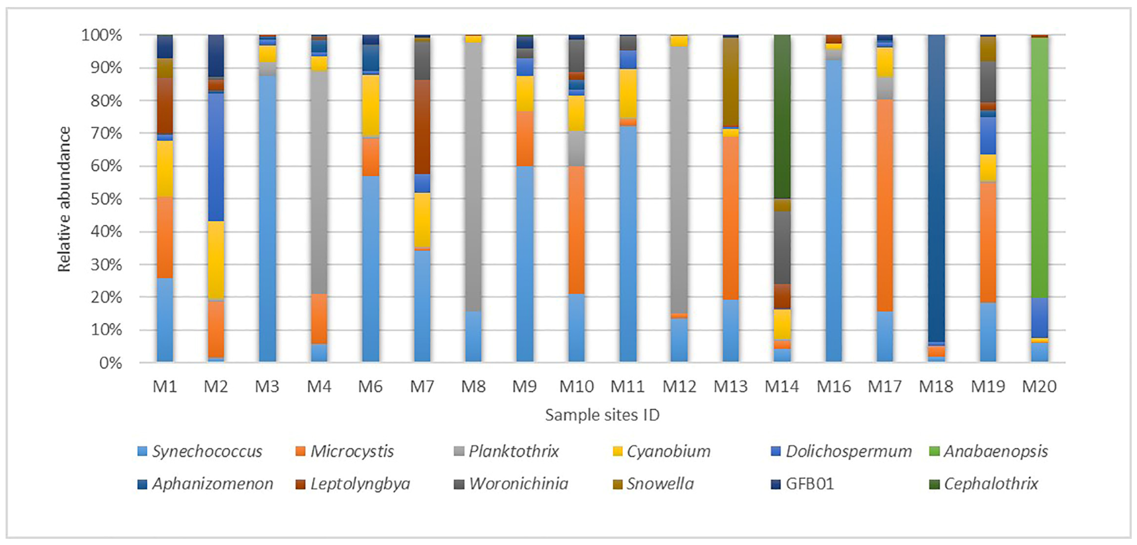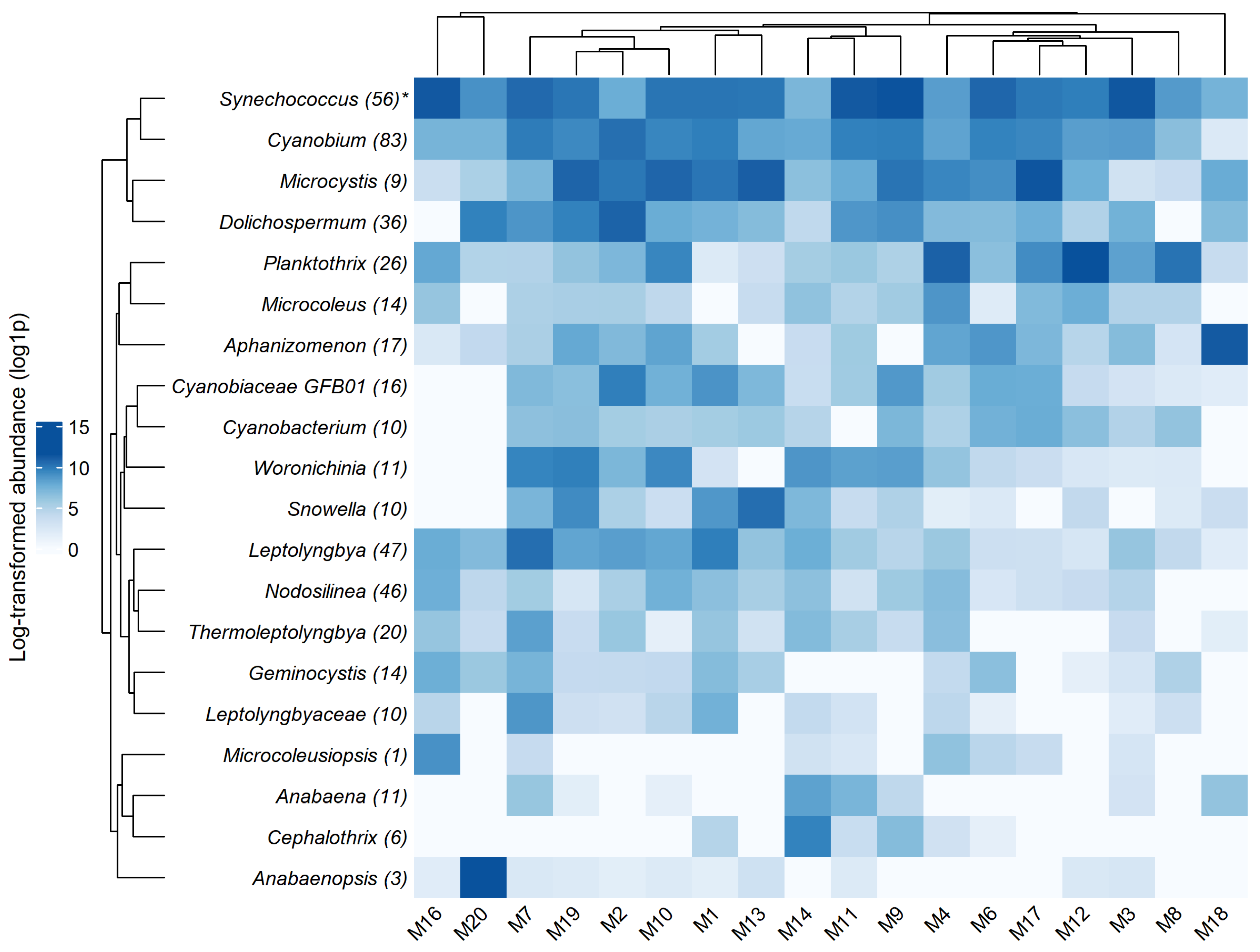 - The short barcode region V3–V4 16S rRNA often does not provide accurate resolution for the species of many cyanobacteria, including the widespread and potentially toxigenic representatives of Microcystis, Planktothrix, Dolichospermum, and Aphanizomenon. Using additional genetic markers (e.g., rbcL, cpcBA or toxin genes) might improve resolution for the cyanobacteria species and toxic genotypes in future studies.