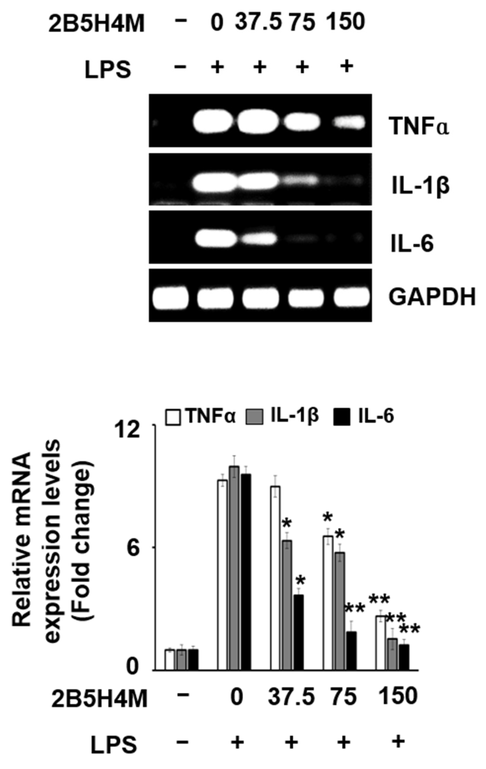 3.3. Effect of 2B5H4M on Cytokine Expression in RAW 264.7 Cells