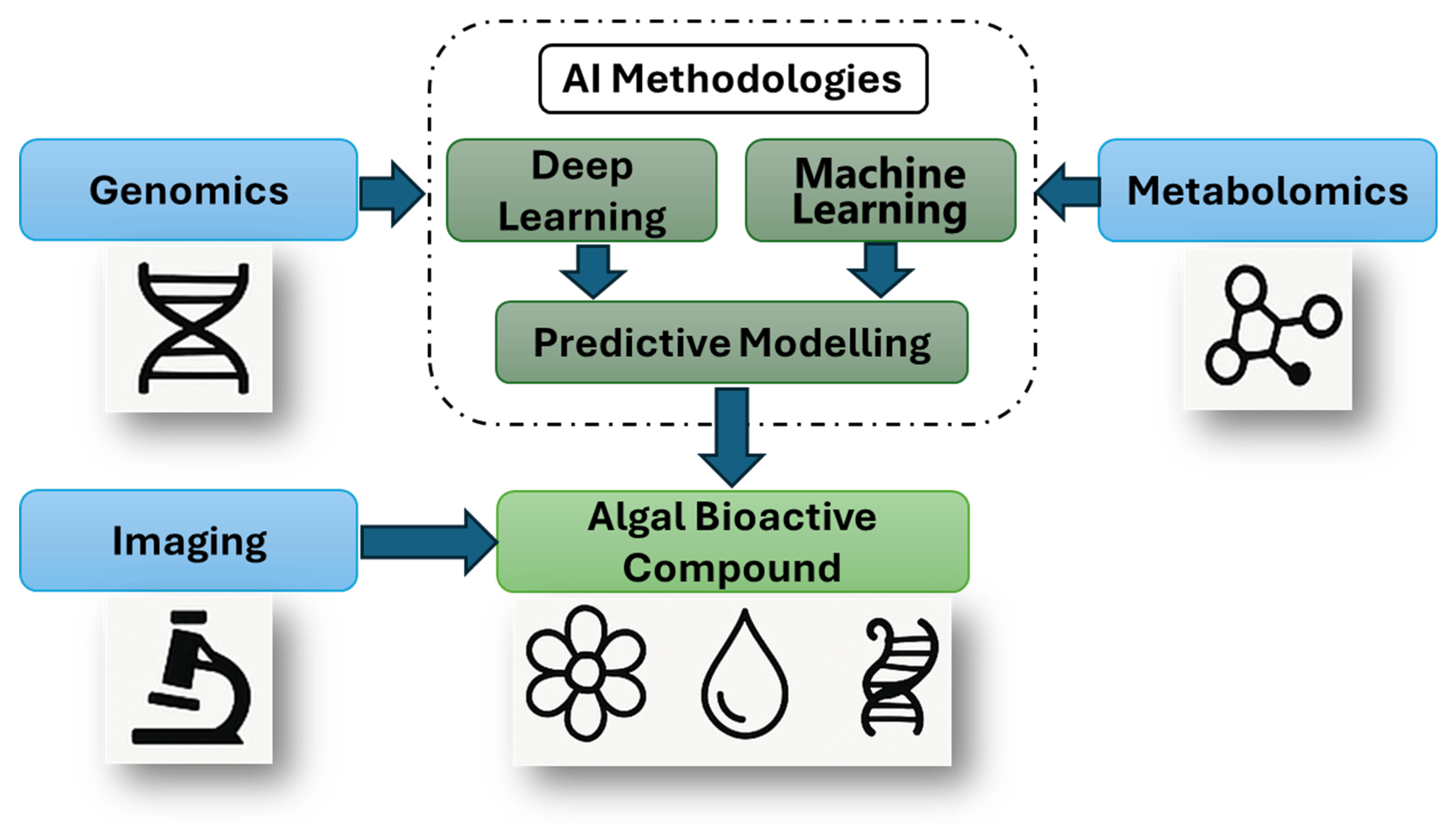 - Guo, B.; Lu, X.; Jiang, X.; Shen, X.-L.; Wei, Z.; Zhang, Y. Artificial Intelligence in Advancing Algal Bioactive Ingredients: Production, Characterization, and Application. Foods 2025, 14, 1783. [Google Scholar] [CrossRef]
