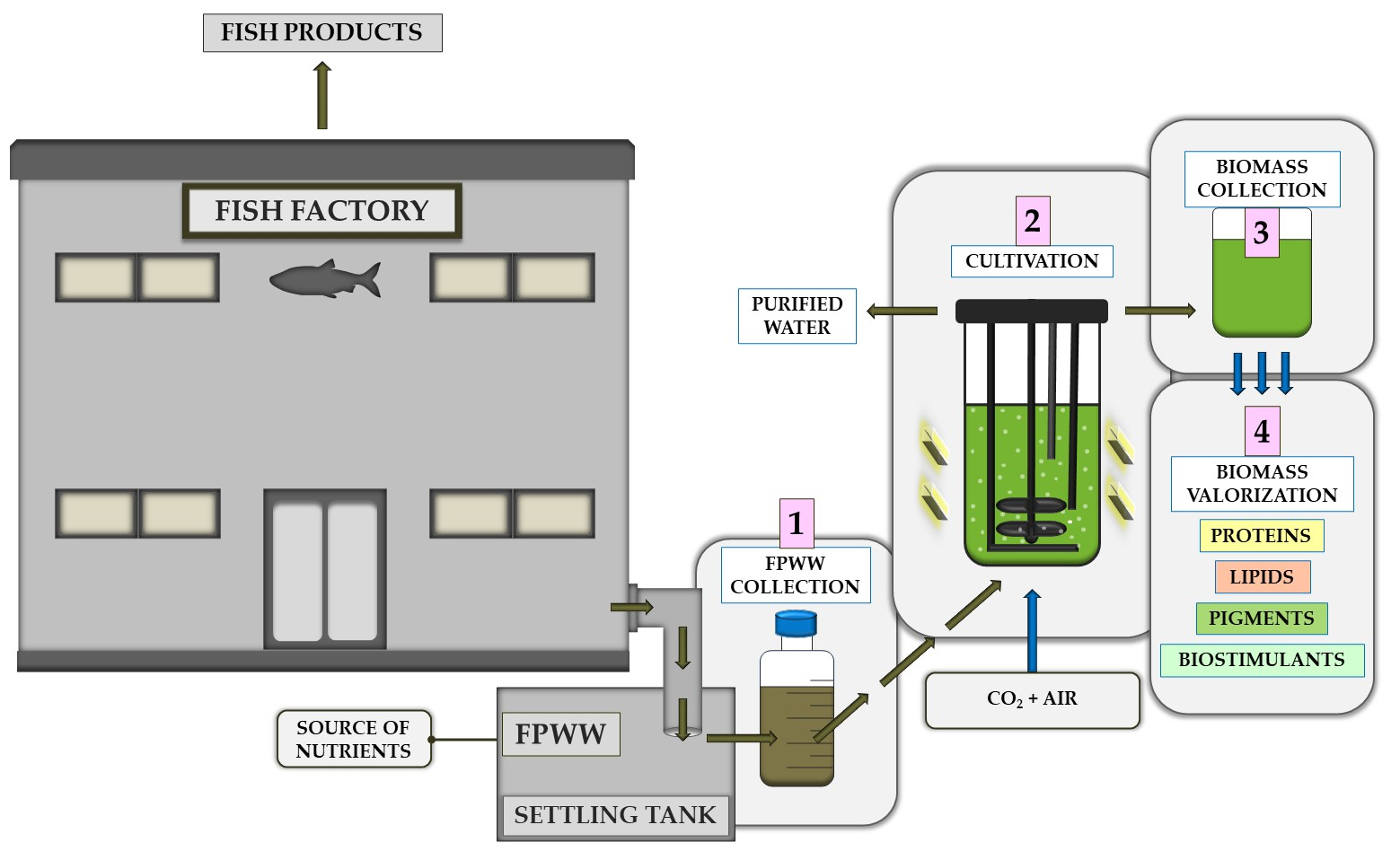 Treatment of Wastewater from the Fish Processing Industry and Production of Valuable Algal Biomass with a Biostimulating Effect