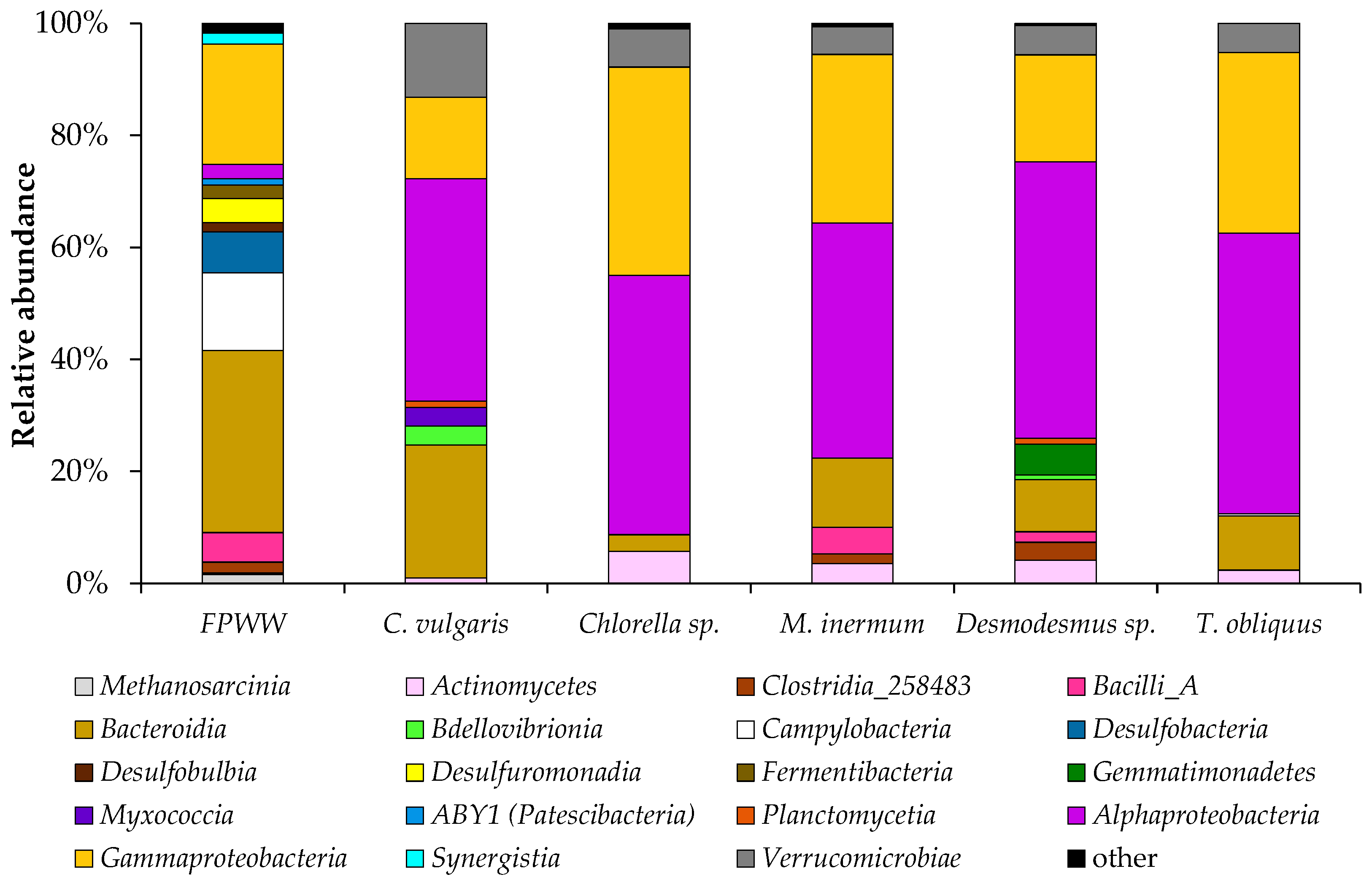 - Park, Y.; Je, K.W.; Lee, K.; Jung, S.-E.; Choi, T.-J. Growth promotion of Chlorella ellipsoidea by co-inoculation with Brevundimonas sp. isolated from the microalga. Hydrobiologia 2008, 598, 219–228. [Google Scholar] [CrossRef]