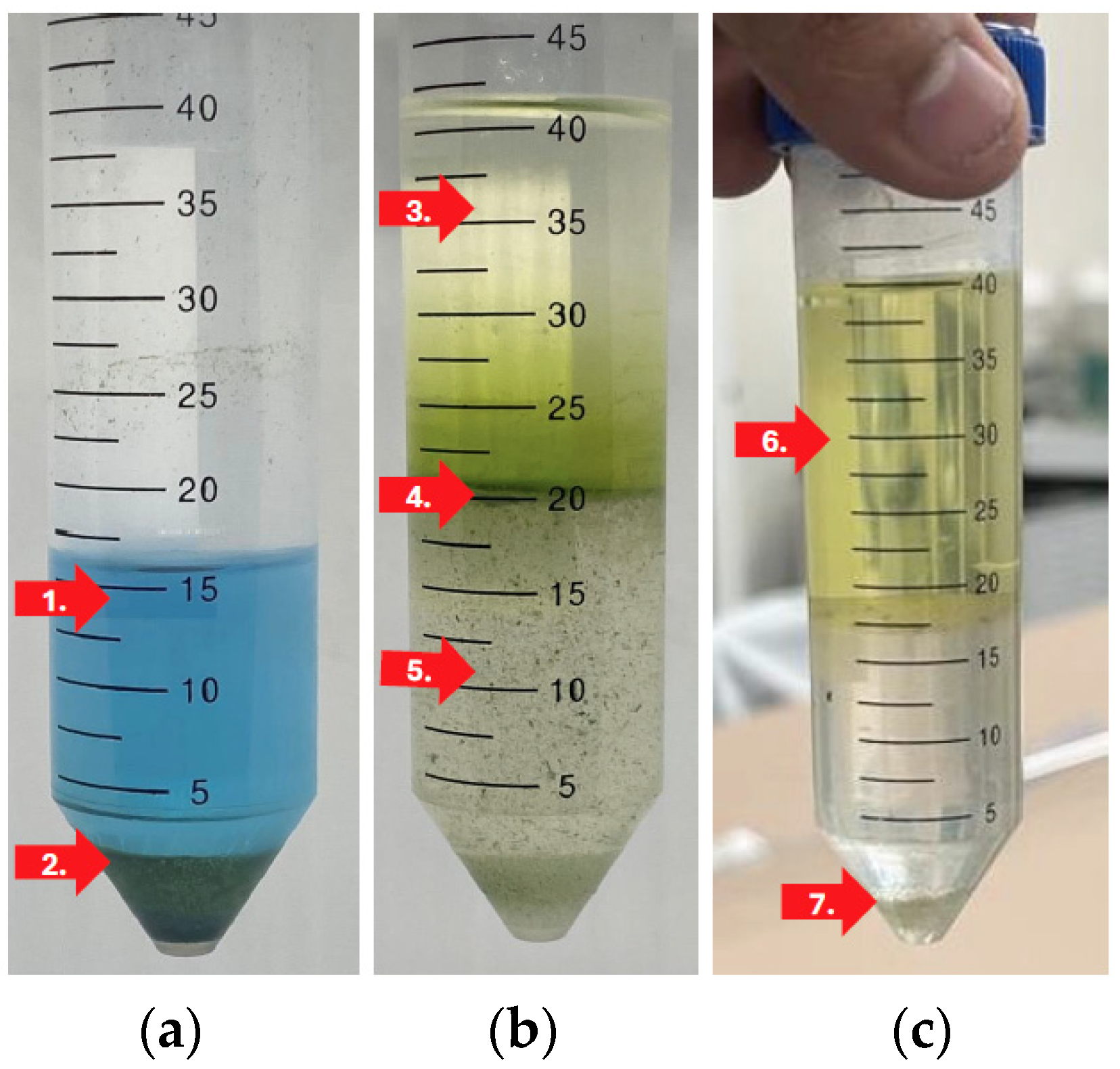 - Koyande, A.K.; Chew, K.W.; Show, P.L.; Munawaroh, H.S.H.; Chang, J.S. Liquid Triphasic Systems as Sustainable Downstream Processing of Chlorella Sp. Biorefinery for Potential Biofuels and Feed Production. Bioresour. Technol. 2021, 333, 125075. [Google Scholar] [CrossRef] [PubMed]