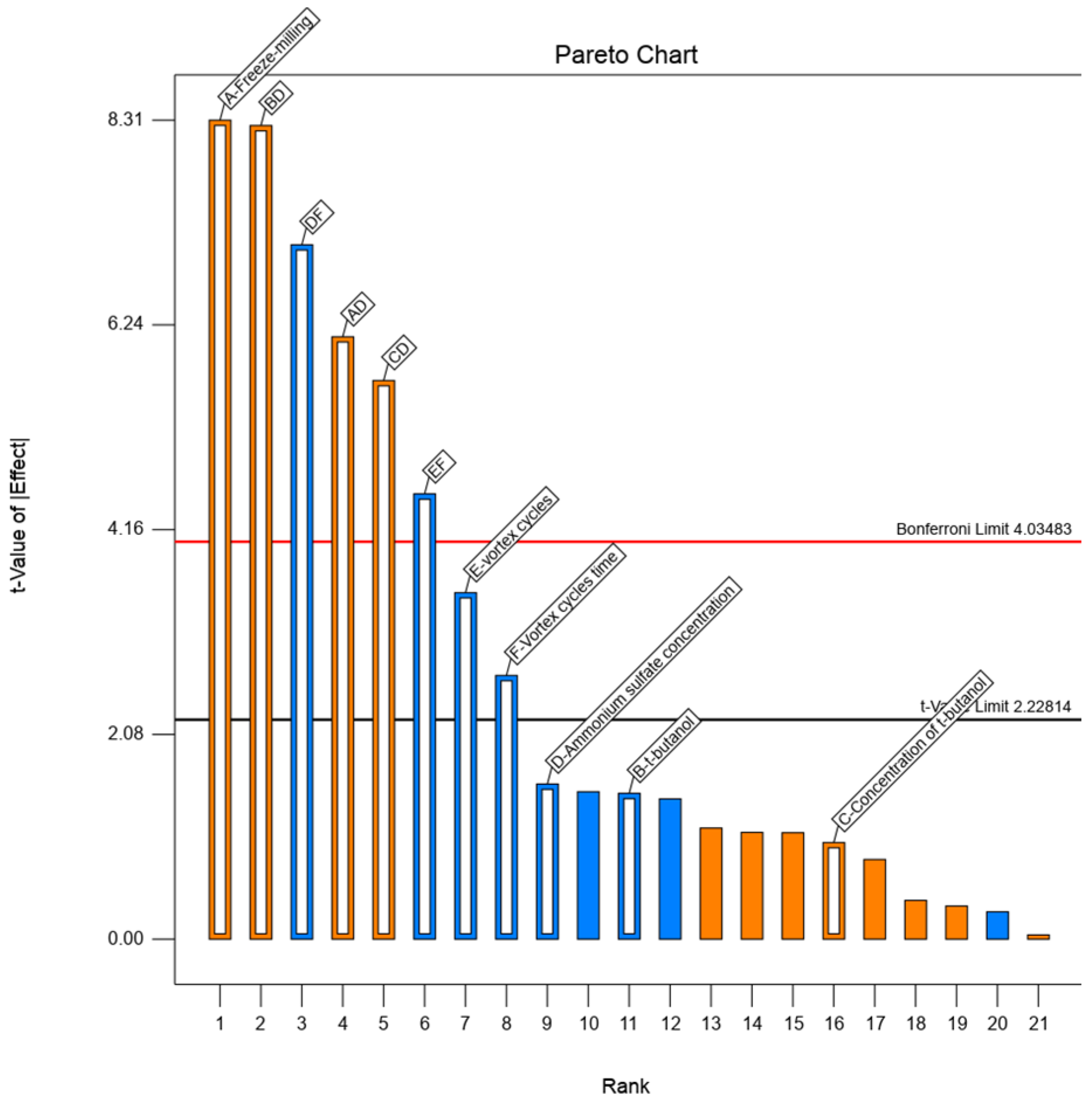 | Freeze-Milling | t-Butanol Volume | t-Butanol Concentration | Ammonium Sulfate Concentration | Vortex Cycles | Vortex Cycles Time | ||