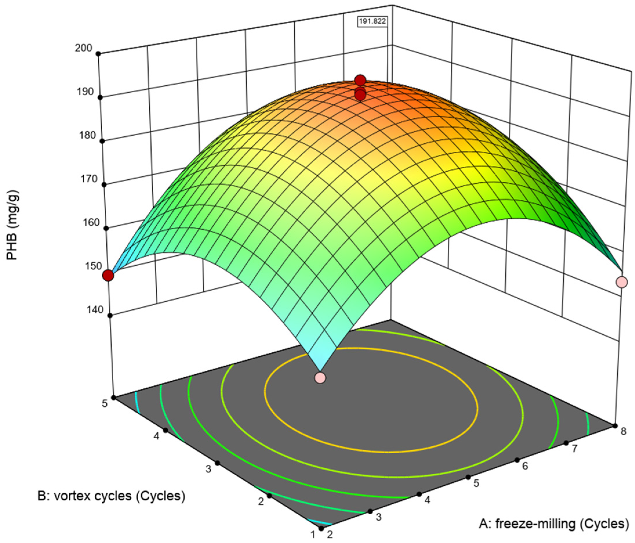 - Singh, D.; Rastogi, V.K. Sustainable Production of Polyhydroxybutyrate (PHB) via Valorisation of Aegle Marmelos Shell Waste: Probe Sonication-Assisted Extraction and Optimization Through Box-Behnken Response Surface Methodology. Int. J. Biol. Macromol. 2025, 322, 146758. [Google Scholar] [CrossRef]