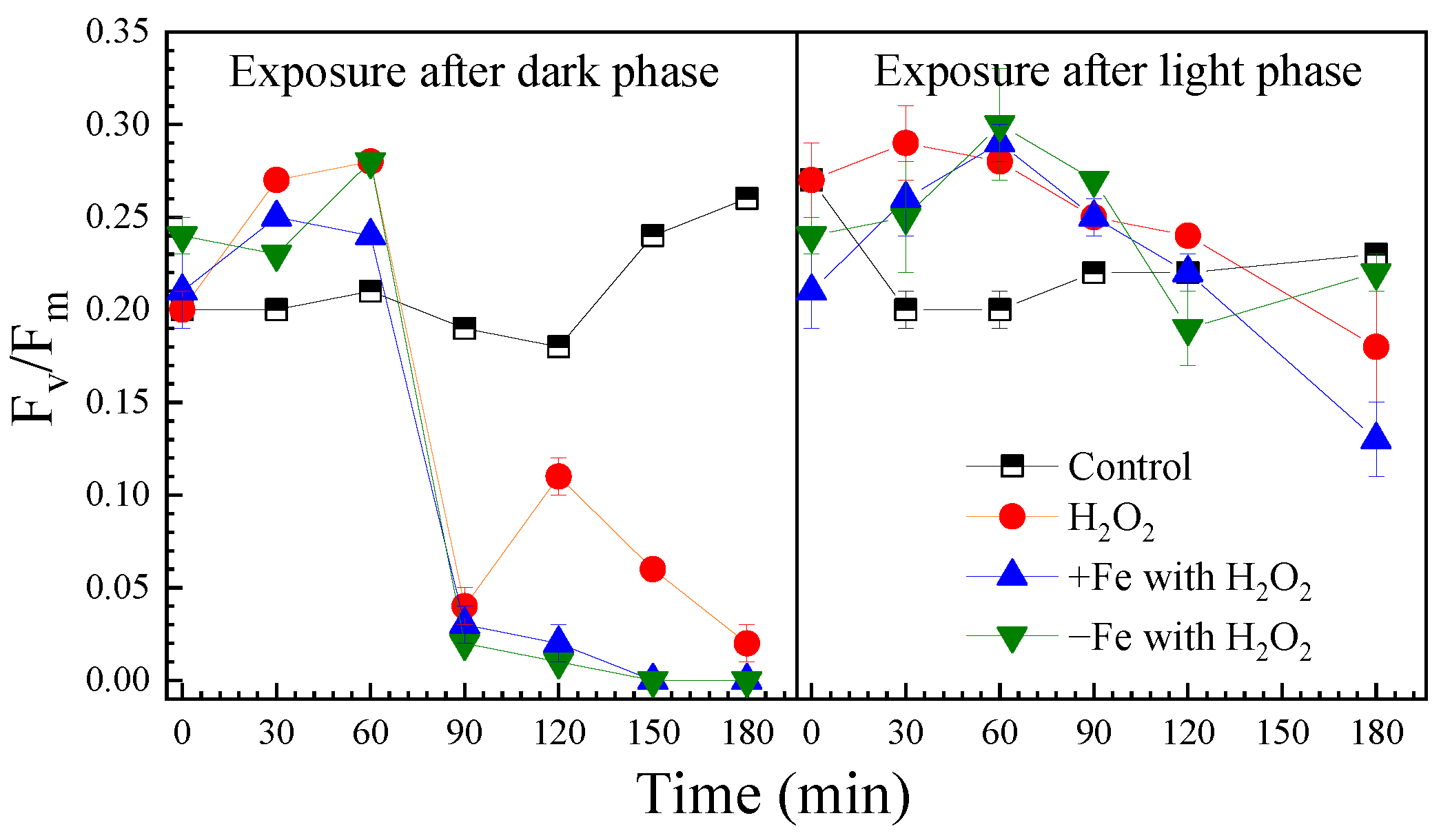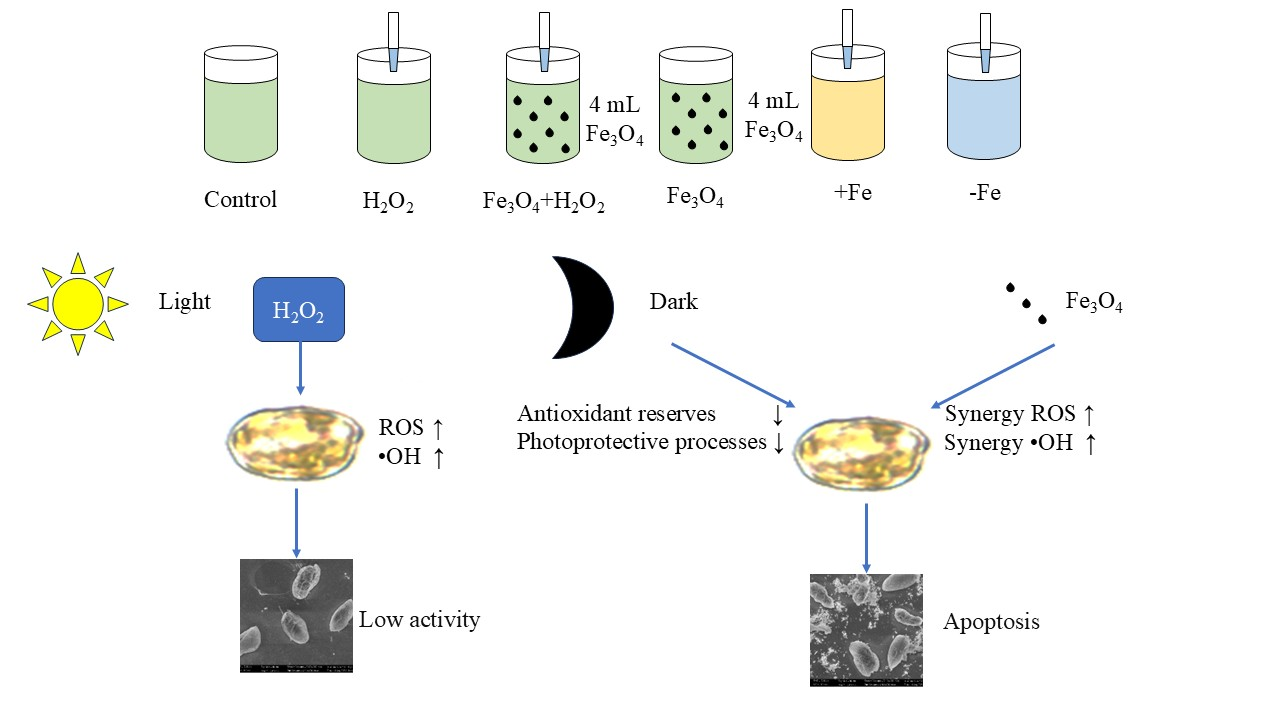 Chicago/Turabian StyleLiang, Pengyu, Ziqing Zhong, and Qilin Zheng. 2026. "Inhibitory Effects of Hydrogen Peroxide on Prorocentrum donghaiense Lu Under Varying Light Conditions and Iron Ion Environments" Phycology 6, no. 1: 22. https://doi.org/10.3390/phycology6010022